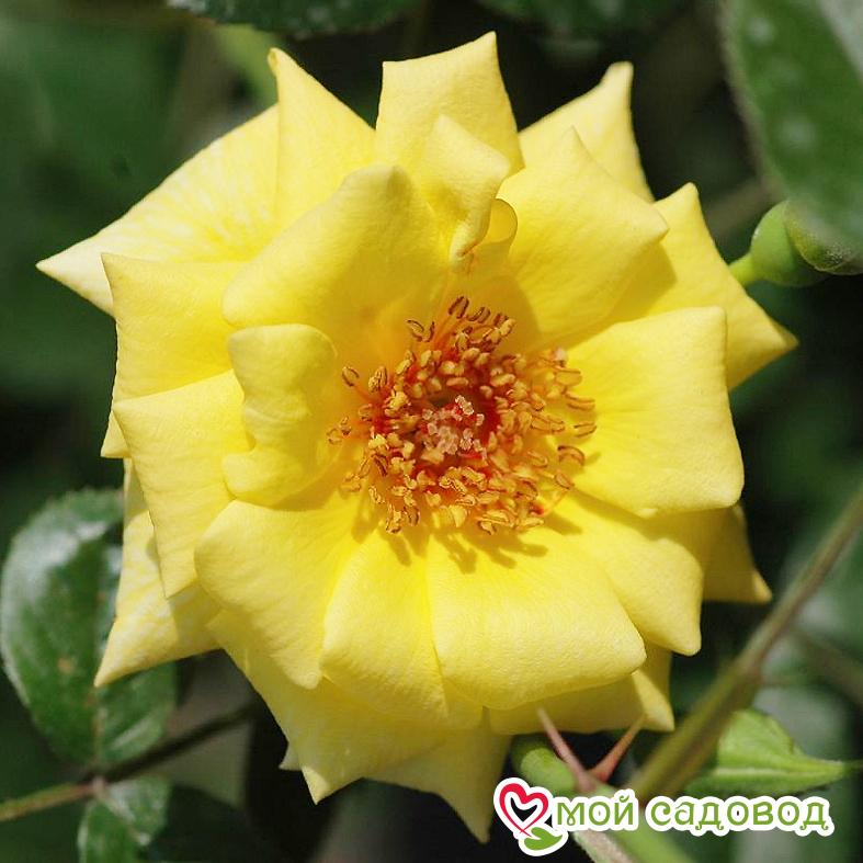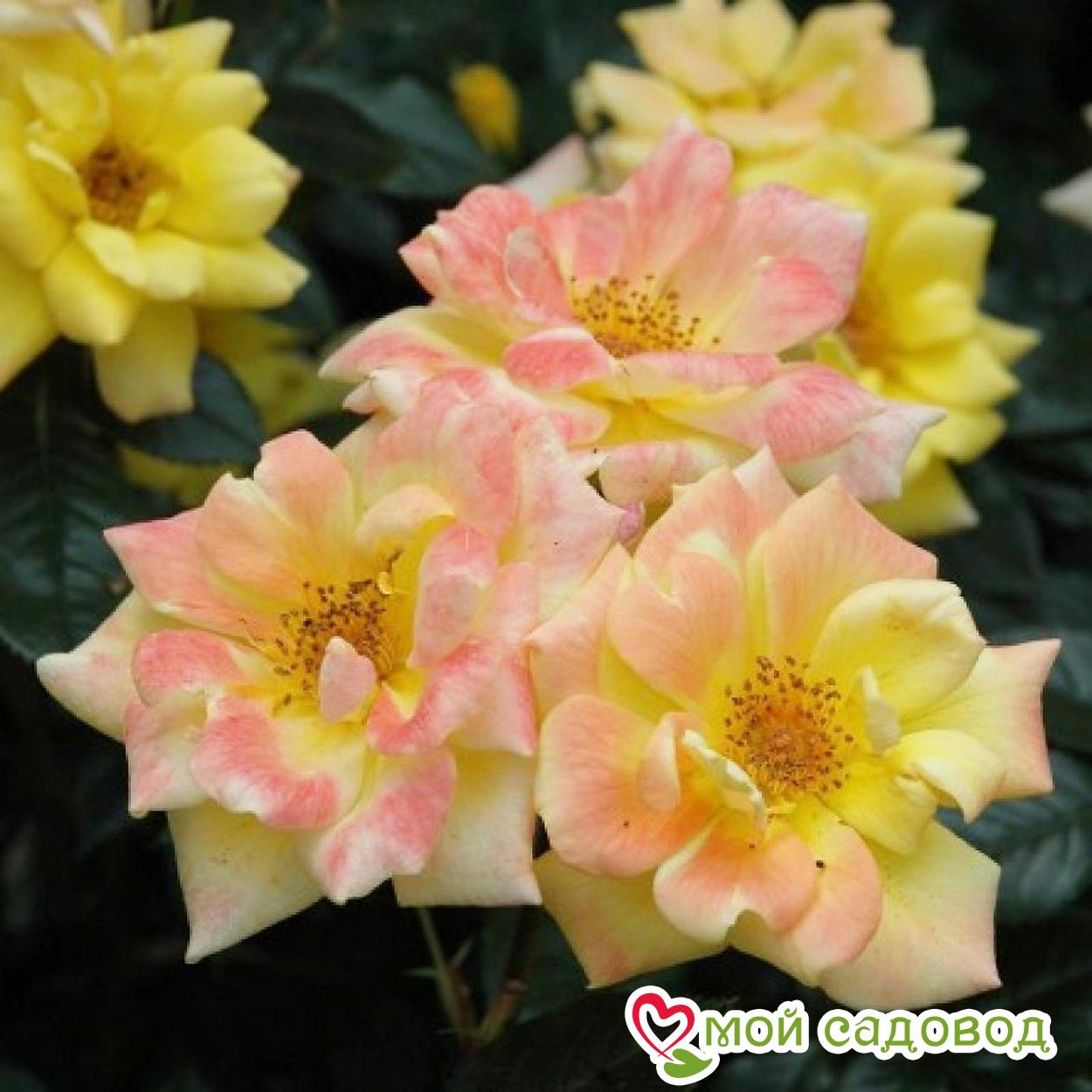 Сорт с небольшими солнечно-желтыми соцветиями небольшого размера 4-5 см в диаметре. Они собраны по 6-7 штук или могут появляться по одному. Отличаются от других сортов розы продолжительным цветением, до постоянных холодов. Куст вырастает шириной до 1.5 м и высотой до 2-2.5 м, для саженца этой розы, купленного в питомнике, нужно предусмотреть опору. Рассаду этой культуры допустимо выращивать в регионах с морозами, доходящими до -20 градусов.